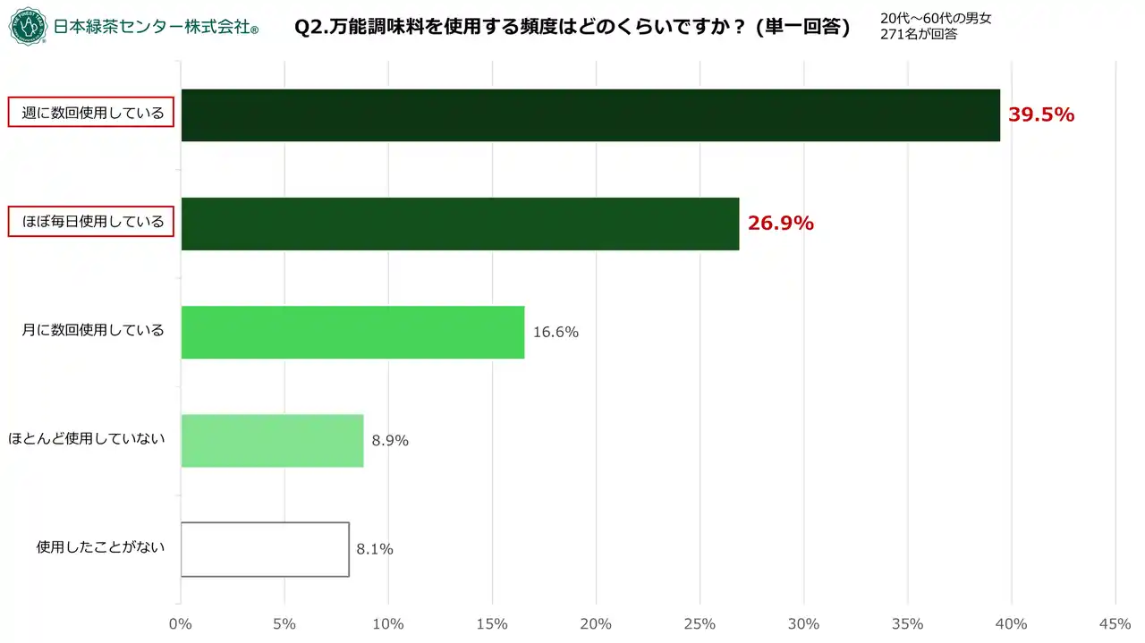 2025年3月、日本緑茶センターで万能調味料(ここでは「複数の調味料を組み合わせなくても、ひとつだけで味が決まる調味料」を指す)に関するアンケートを実施いたしました※。 |