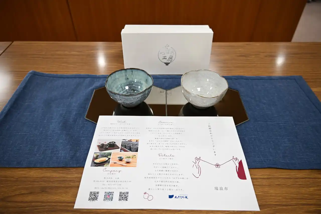 市では、これらの陶器を、2026年1月1日以降、市役所および市内4つのコミュニティセンターで婚姻届を提出したカップルに「瑞浪からの門出の贈り物」として進呈します(なくなり次第終了)。 |