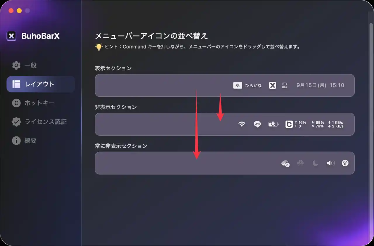BuhoBarXはMacのメニューバーを綺麗に整理できるツールです。メニューバーのアイコンを隠したり、表示させたりなど自由にカスタマイズできます。2025年の新製品のため、クリスマスの間でたった1,180円で永久ライセンスを入手できます。 |
