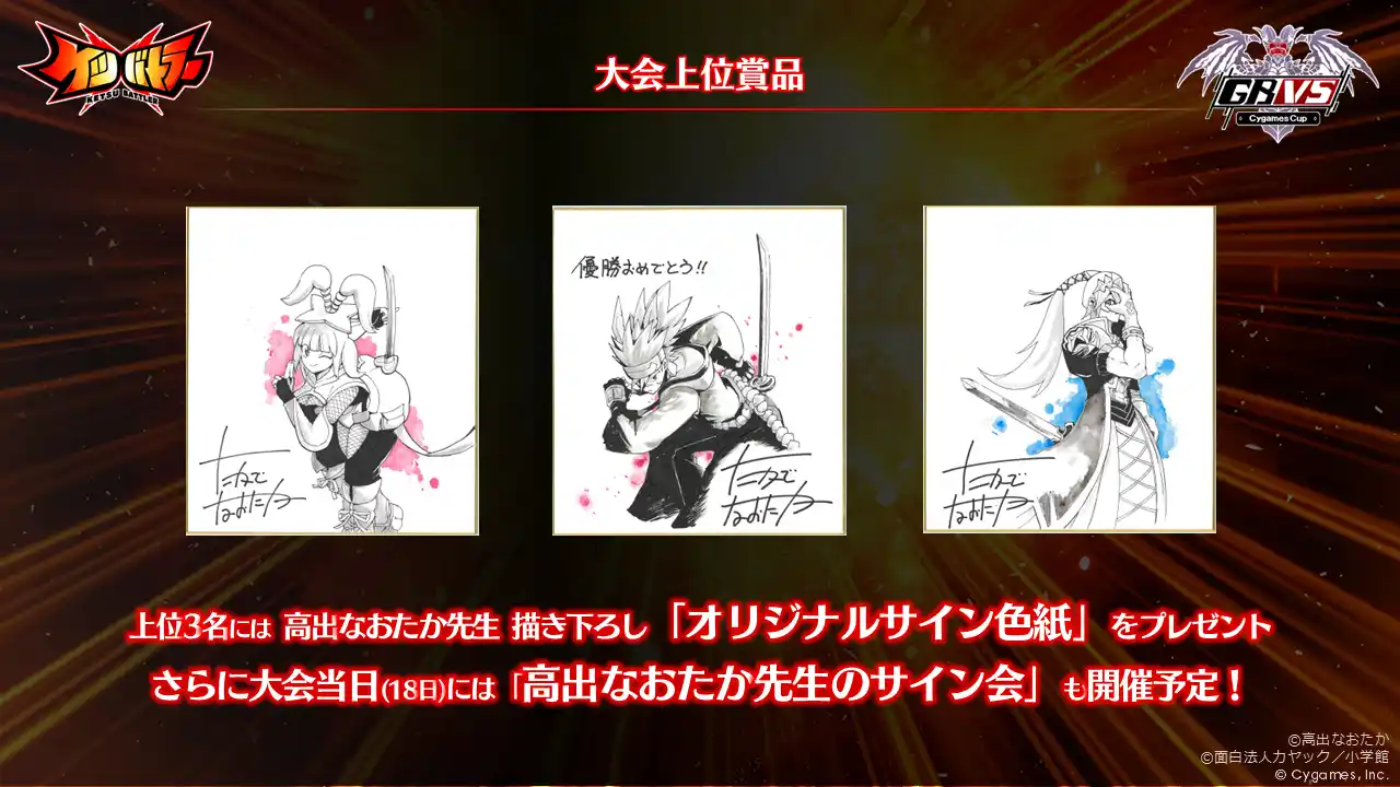 大会賞品 :上位3名に高出なおたか先生描き下ろし「オリジナルサイン色紙」プレゼント |