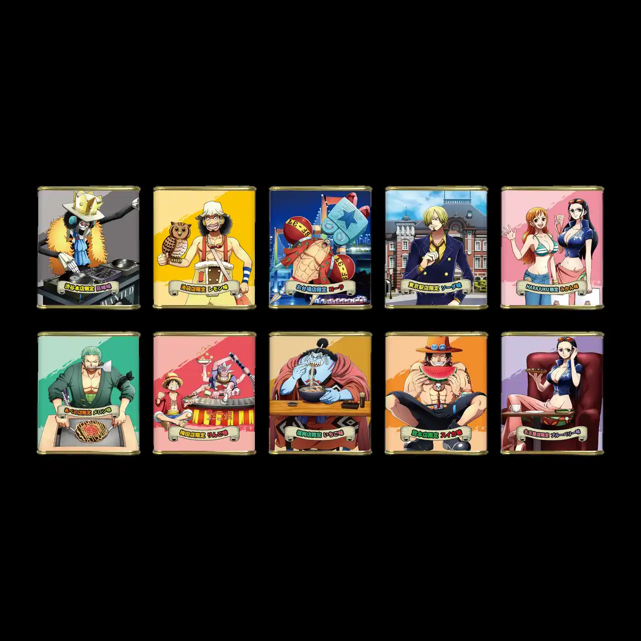 渋谷本店はブルック、池袋店はウソップ、お台場店はフランキー、東京駅店はサンジ、名古屋店はロビン、あべの店はゾロ、梅田店はルフィとハチ、福岡店はジンベエ、熊本店はエース、HARAJUKUはナミとロビンの描き下ろしイラスト! |
