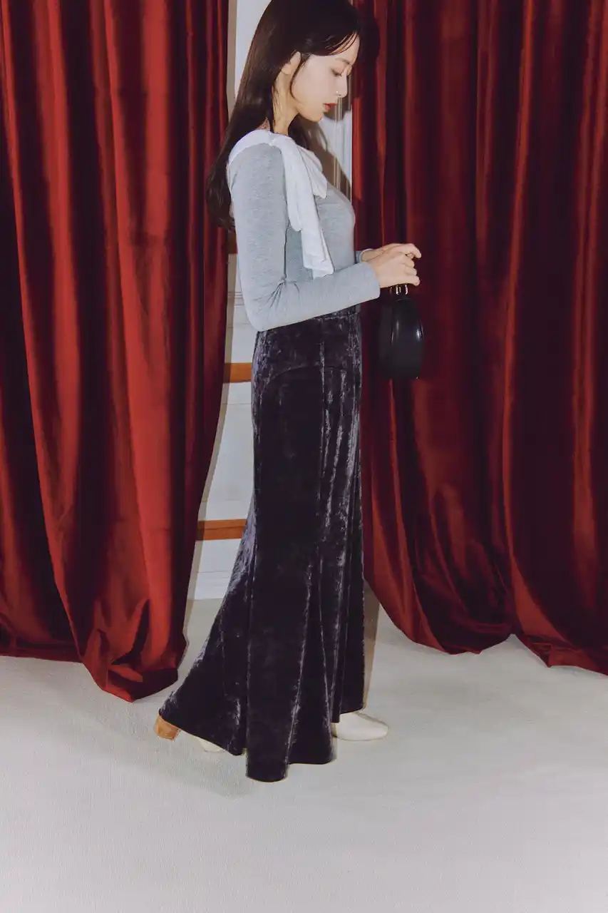 KNIT×BUSTIER SET ¥13,200/ SKIRT ¥12,100 |