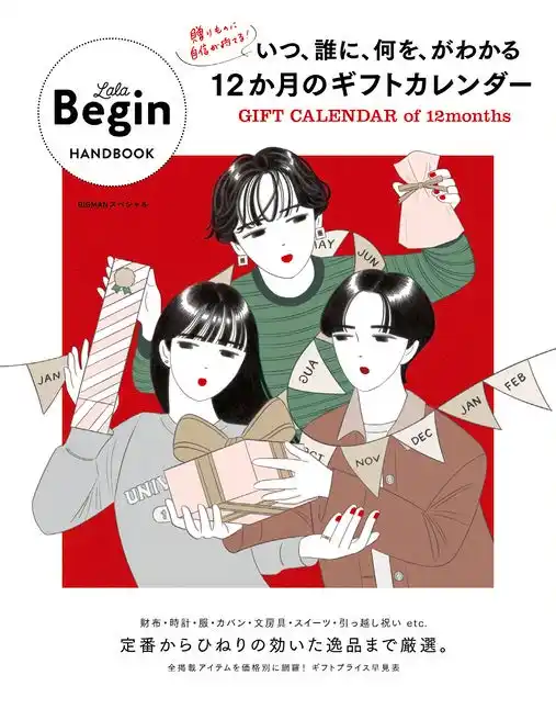 | 株式会社世界文化社は、人気ムック・シリーズ「LaLa Begin HANDBOOK」の最新刊『いつ、誰に、何を、がわかる12か月のギフトカレンダー GIFT CALENDAR 12 months』を11月29日 (土) に発売しました。 | |||||||||||||