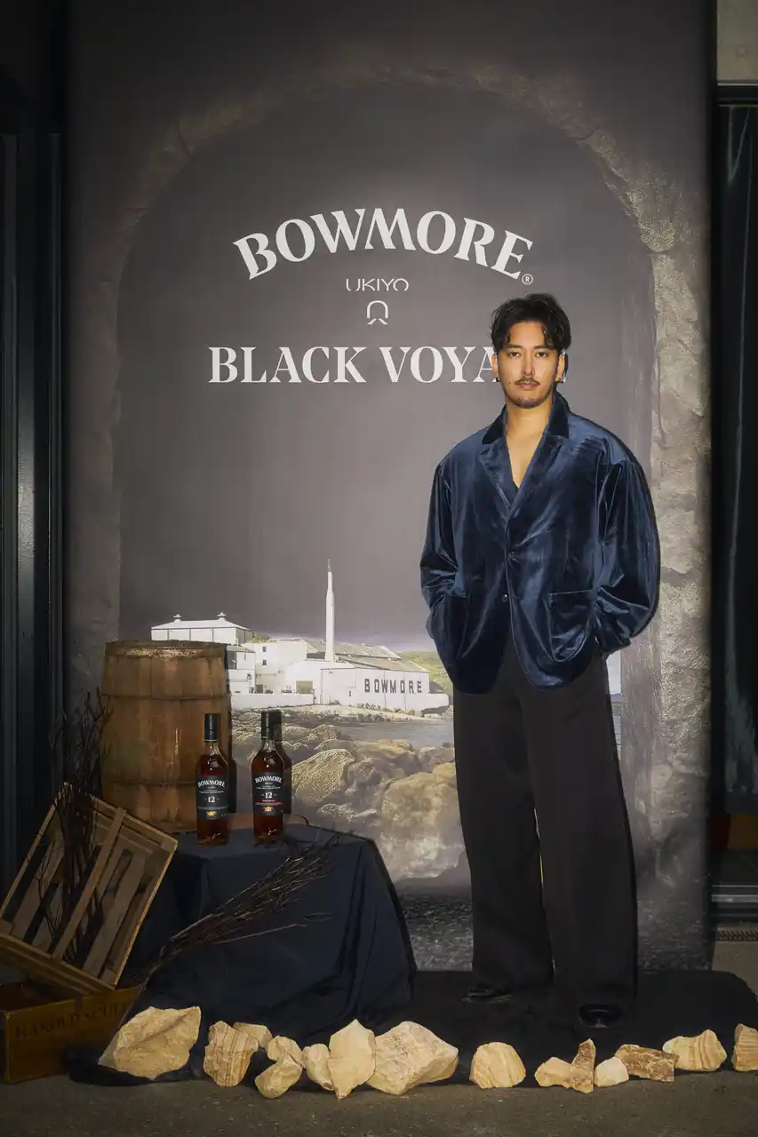 イベントには、俳優・坂東工さん、モデル・三浦理志さん、サッカー選手・鈴木啓太さん、モデル・畑野ひろ子さんをはじめ、スペシャルゲストが多数来場。「ドレスコード:サムシング・ブラック」のもと、黒の装いに身を包んだゲストたちは、「ボウモア」と「薪火料理」が織りなす五感に響く体験を堪能しました。 |