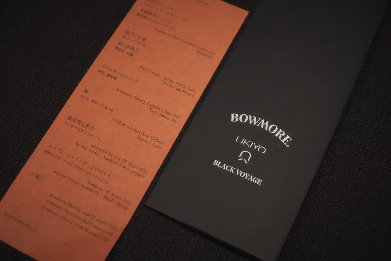 サントリー株式会社は、スコットランドのシングルモルトウイスキー 「ボウモア(BOWMORE)」 ブランドのリニューアルを記念し、代々木上原で注目を集めるガストロノミー「Ukiyo」にて、ペアリングランチイベント「BOWMORE BLACK VOYAGE」を12月9日(火)・10日(水)の2日間にわたり開催しました。 |