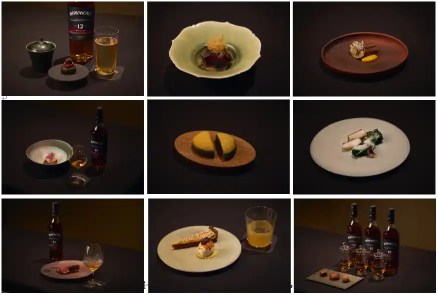 テイスティングセッションでは、新発売の「ボウモア シェリー」3種が、「Ukiyo」のシェフによる、この日のためだけに考案された特別なペアリングコースと共に提供されました。 |