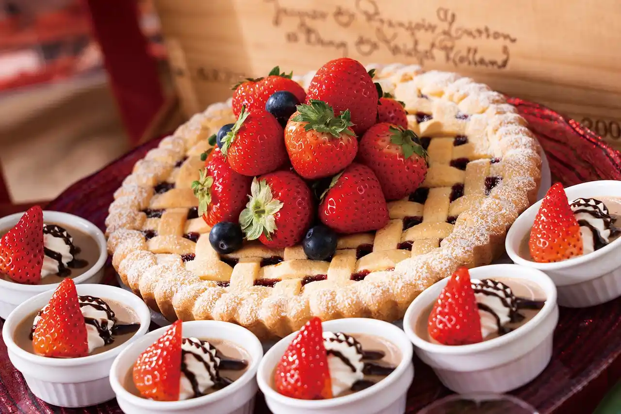定番のティラミスは、マスカルポーネとストロベリーの酸味が調和した滑らかなくちどけ。また、イタリア伝統菓子の「クロスタータ」は、生地にたっぷりのストロベリージャムを詰め、格子状の網目も美しく焼き上げ、甘酸っぱさとサクサクとした食感を味わえる一品です。 |