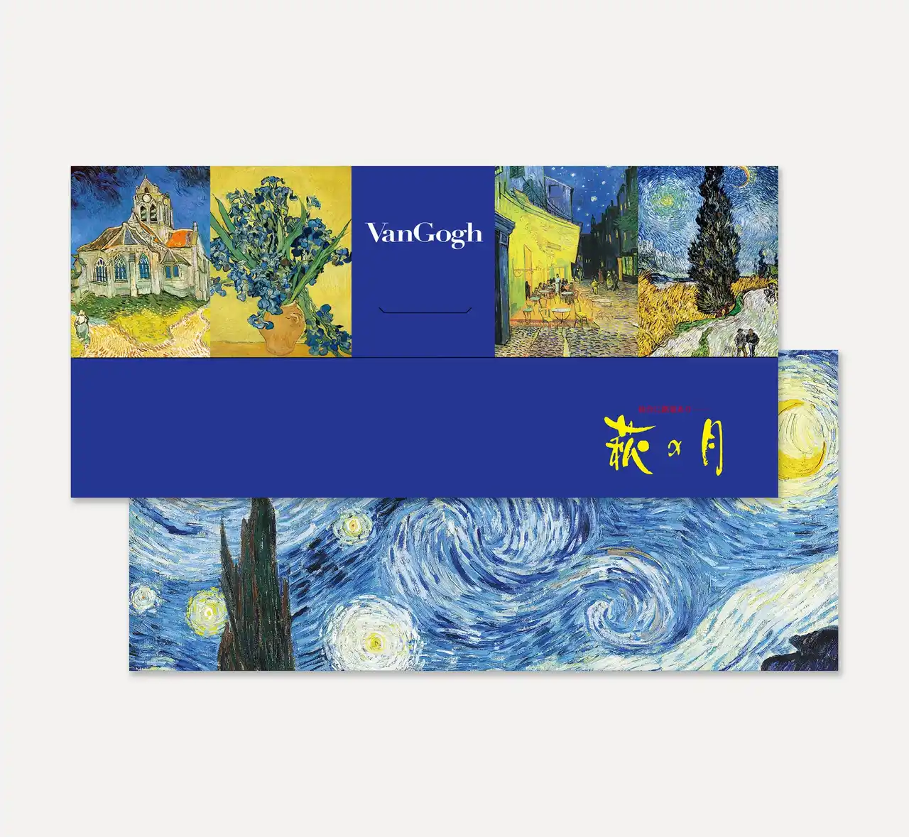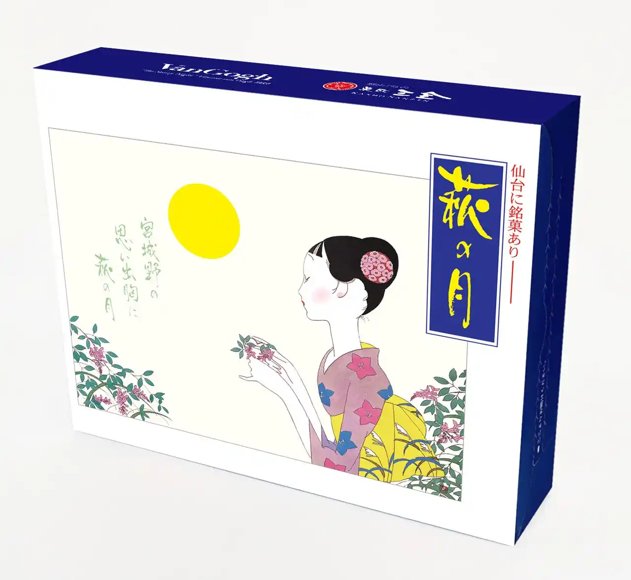 フィンセント・ファン・ゴッホの代表作のひとつ「星月夜」をフィーチャーしたコラボレーションパッケージの「萩の月」を販売させていただきます。西洋と東洋 それぞれが月にこめた思いと情緒をお愉しみいただける期間限定のお品です。 |