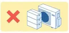 空気中の熱を集める室外機にとって、空気の通り道は大切です。室外機周辺の障害物で吸込口や吹出口がふさがれてしまうと、熱を効率的に集めることができず、無駄な電力消費につながります。障害物がない場合も、冬は室外機の周りに雪が積もって吸込口や吹出口をふさいでしまうこともあります。室外機の周辺はすっきりと余計なものは置かず、障害物は取り除くようにしましょう |