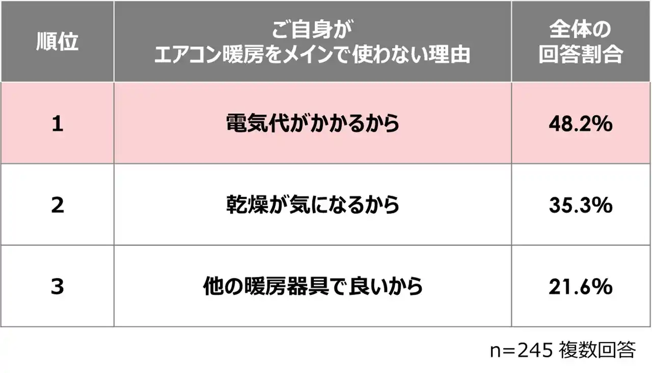 ご自身がエアコン暖房をメインで使わない理由 |