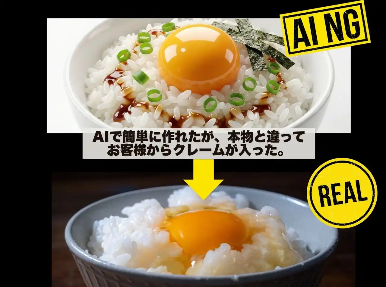 昨今、画像生成AIの進化により、湯気の立つシズル感あふれる料理画像が、コストをかけずに誰でも作れるようになりました。しかし同時に、消費者の中では新たな「この料理、本当に実在するのか?」「SNSの写真と、実際の店舗で出てくる料理が違いすぎないか?」といった不信感が生まれています。食品・飲料・スイーツといった"口に入るもの"を扱うブランドにとって、ビジュアルと実物の乖離は、顧客への「裏切り」となりブランドへの信用を大きく損ないます。 私たちは、「写真は綺麗だが実態が伴わない」という状態こそが、これからの時代の最大のリスクであると捉え、本事業を開始しました。 |