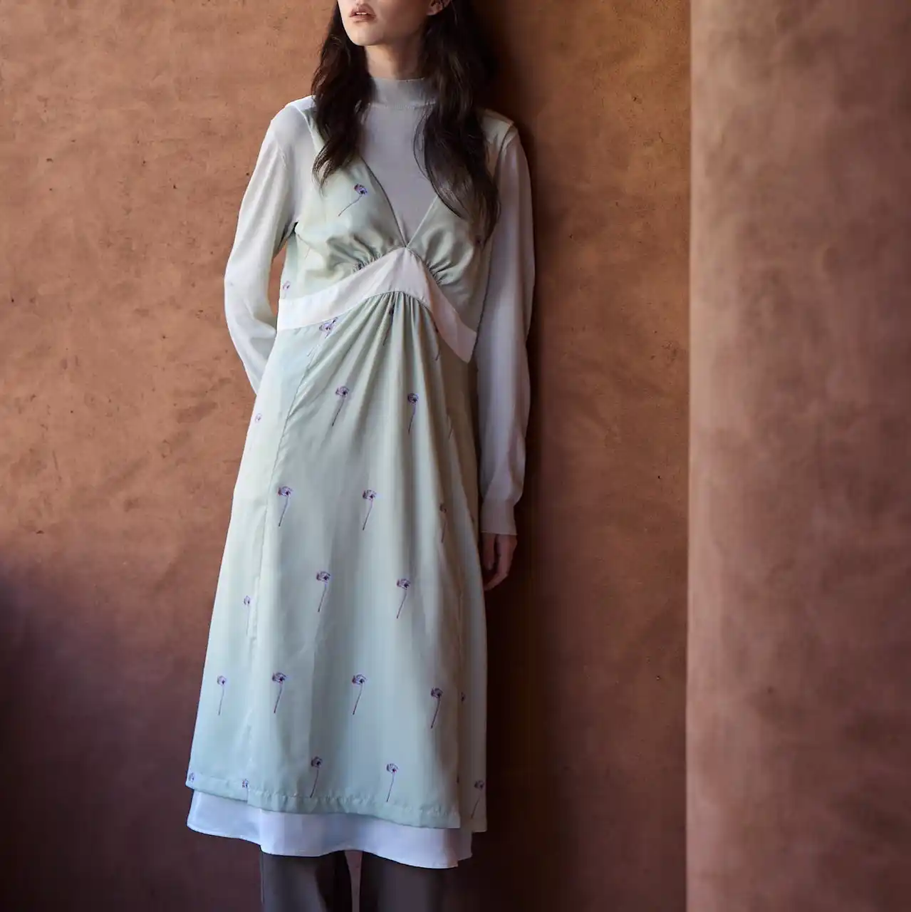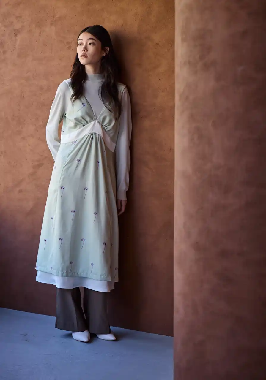 深いVラインが描く女性らしいシルエットに、繊細なフラワープリントが華やぎを添えるサロペットドレス。とろみのある素材が歩くたびにしなやかに揺れ、高めの切り替えがスタイルアップを叶えてくれます。日常はもちろん、特別なシーンにも軽やかに寄り添います。 |