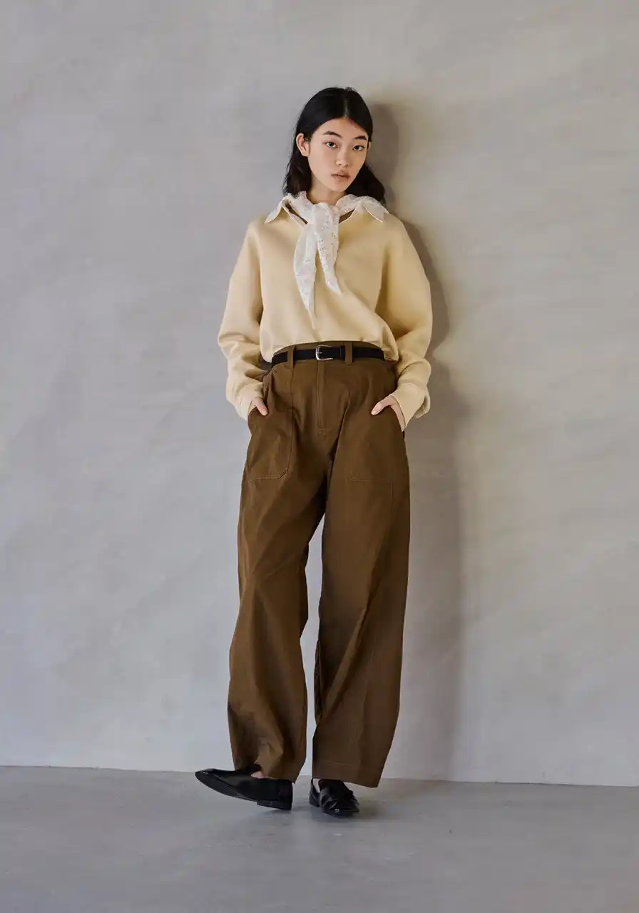 ほどよいゆとりのあるシルエットが身体を包み込み、カジュアルさの中に上品なムードを宿します。一枚で佇まいが整うバランスの良さが魅力で、日常のスタイルを品よく更新してくれるトップスです。 |