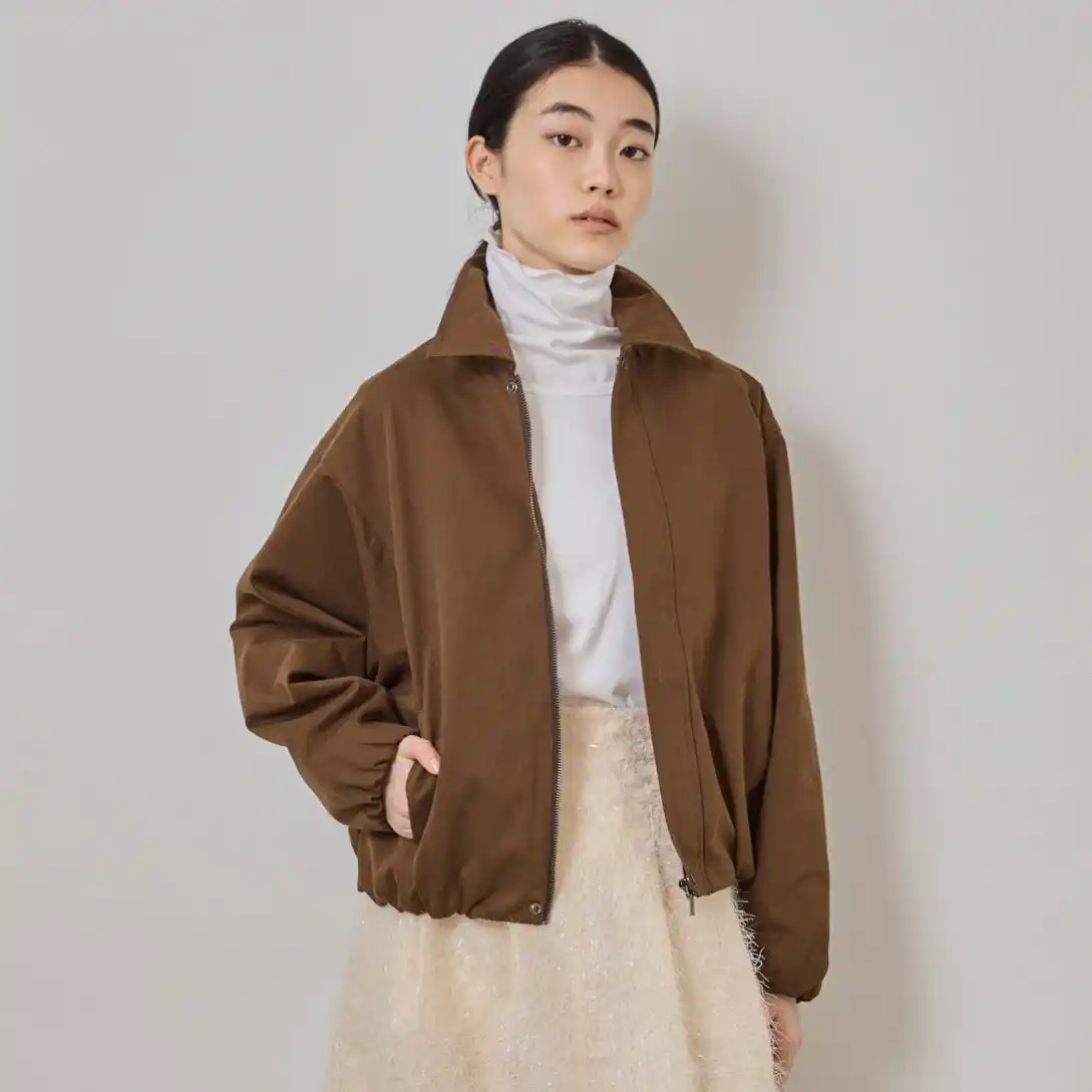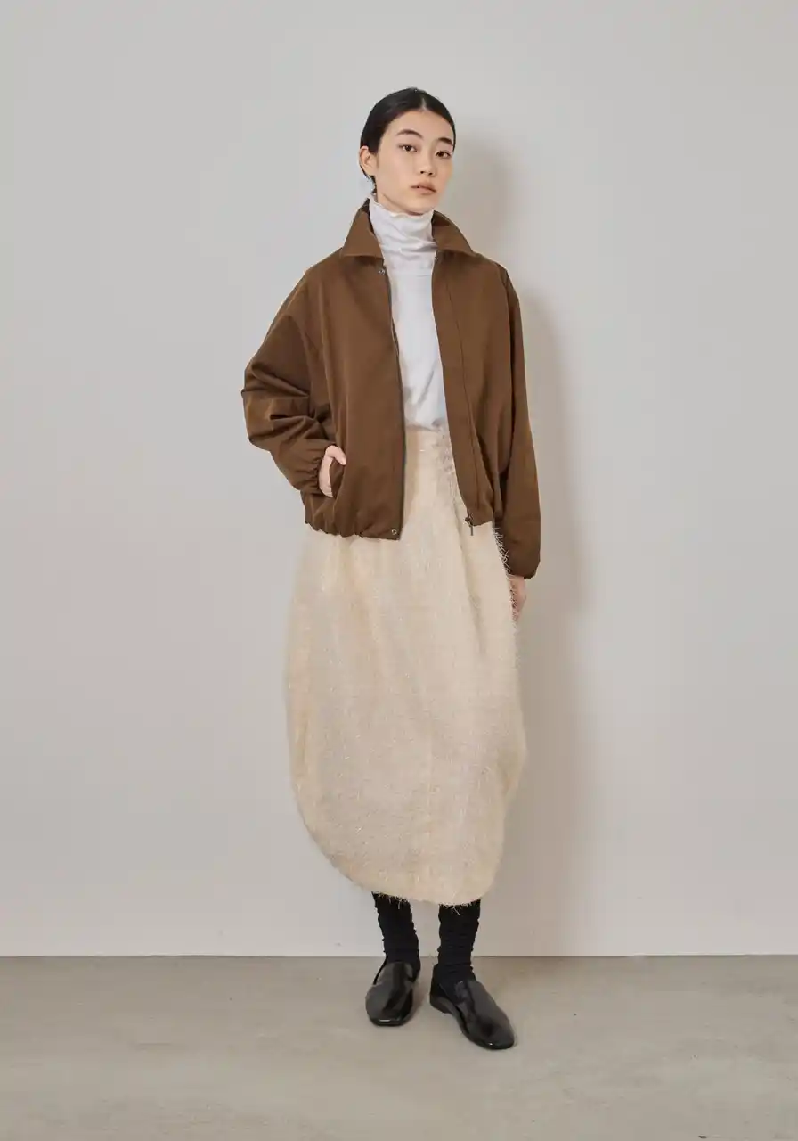 軽さのある素材を、シャープな襟元とクロップド丈で構築したジャケット。ミニマルな表情に、裾のギャザーがほのかな丸みとリズムを添えます。クロップド丈ならではのバランスの良さが、どんな装いにもすっと馴染み、大人のカジュアルに取り入れやすい、頼れる一着です。 |