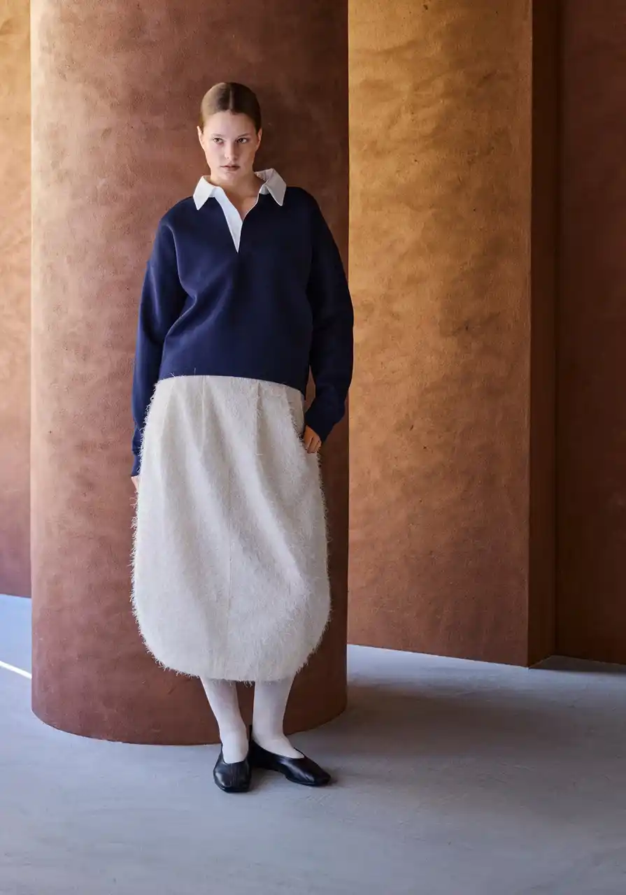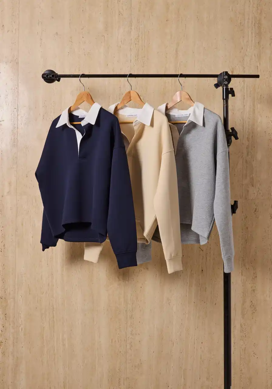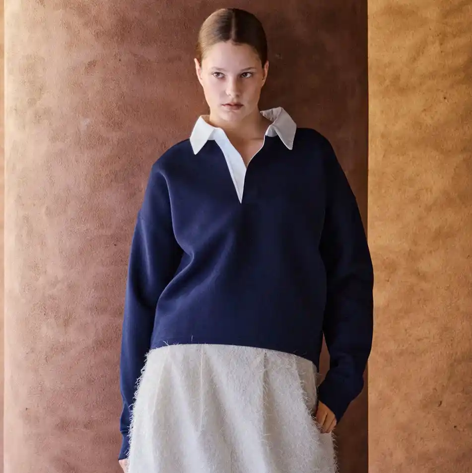 やわらかな配色の襟を添え、クリーンさを引き立てたスキッパースウェット。 |