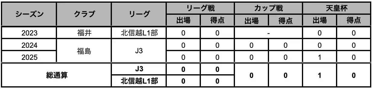 | 【サッカー歴】会津サントス FC→⽮板中央高校→平成国際大学→福島ユナイテッド FC→福井ユナイテッド FC→福島ユナイテッド FC | |||