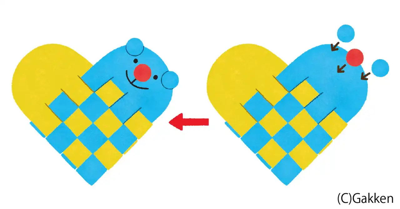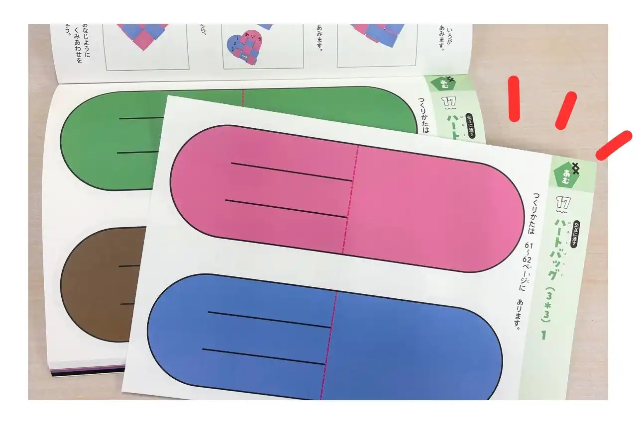 | ・2枚の紙を編み込む「ハートバッグ」 | |||||||