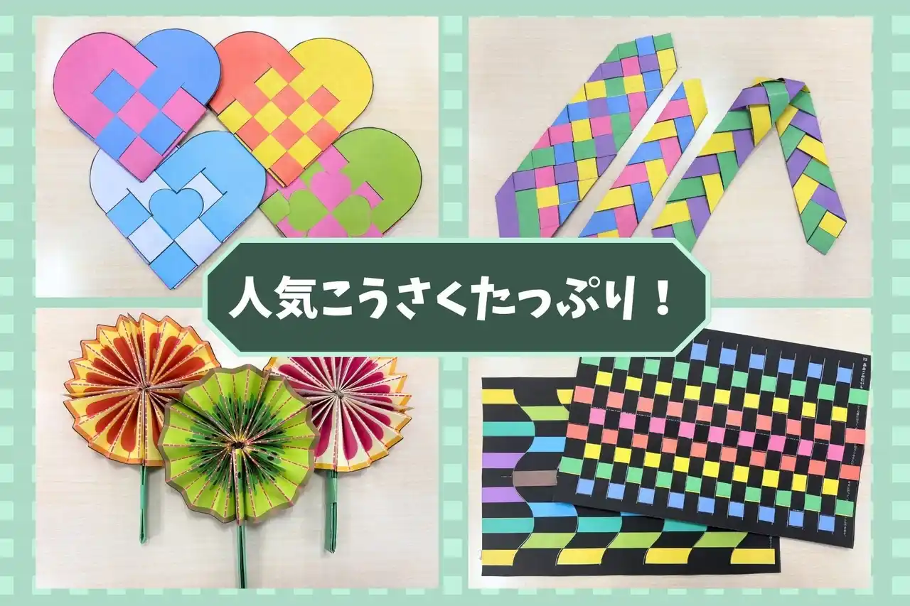 | ・真っ黒い台紙に切れ目を入れ、細い紙を編み込む「台紙編み」 | |||||||