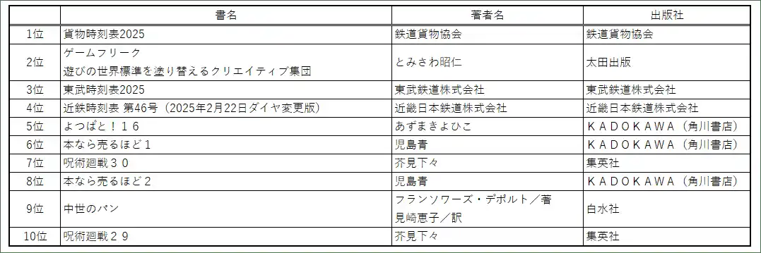 2025年のベストセラーランキングが各社より発信されました。 |