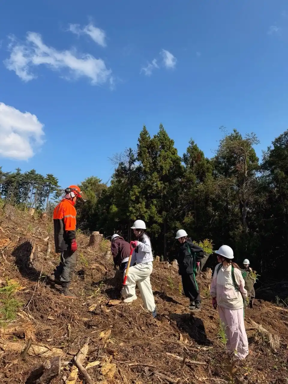 2025年10月末、マッシュスタイルラボは宮城県南三陸町のFSC(R)認証林で初回の植林活動を実施しました。南三陸町で林業を営む株式会社佐久(所在地:宮城県本吉郡南三陸町/代表取締役社長:佐藤太一)とのパートナーシップのもと、マッシュグループ社員およびアライアンス企業のメンバーが参加し、スギの苗木を植樹しました。 |