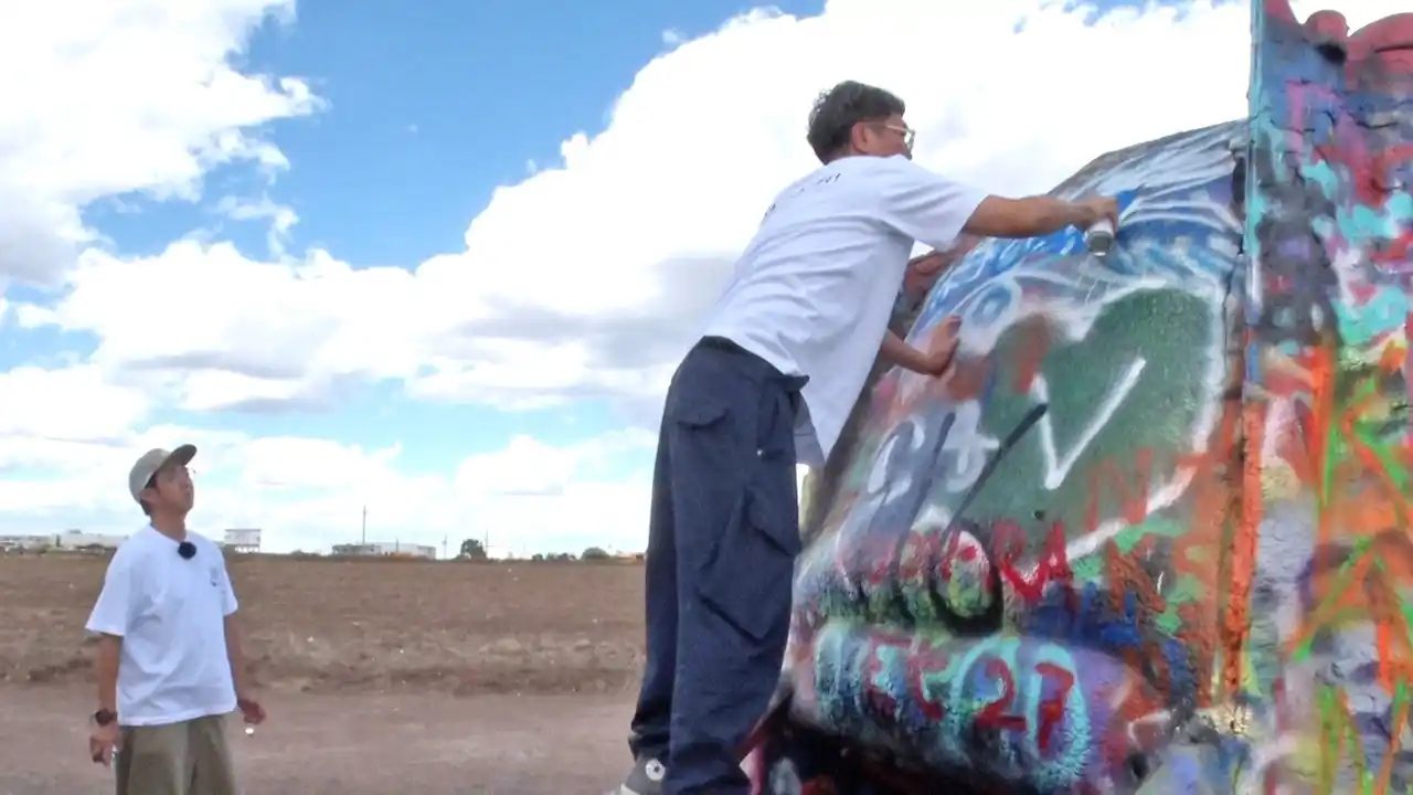 | 旅の最終目的地は、ルート66沿いにある、あるクルマをモチーフにしたアート作品が並ぶ地。訪れた証を刻みつつ、2人は番組のさらなる発展を願うのであった。 | |||