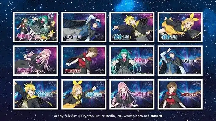 種類:初音ミク 夜空プログラム 2025 うなさか先生書下ろしイラスト(キービジュアル/初音ミク/鏡音リン/鏡音レン/巡音ルカ/MEIKO/KAITO ver.)計12種 |
