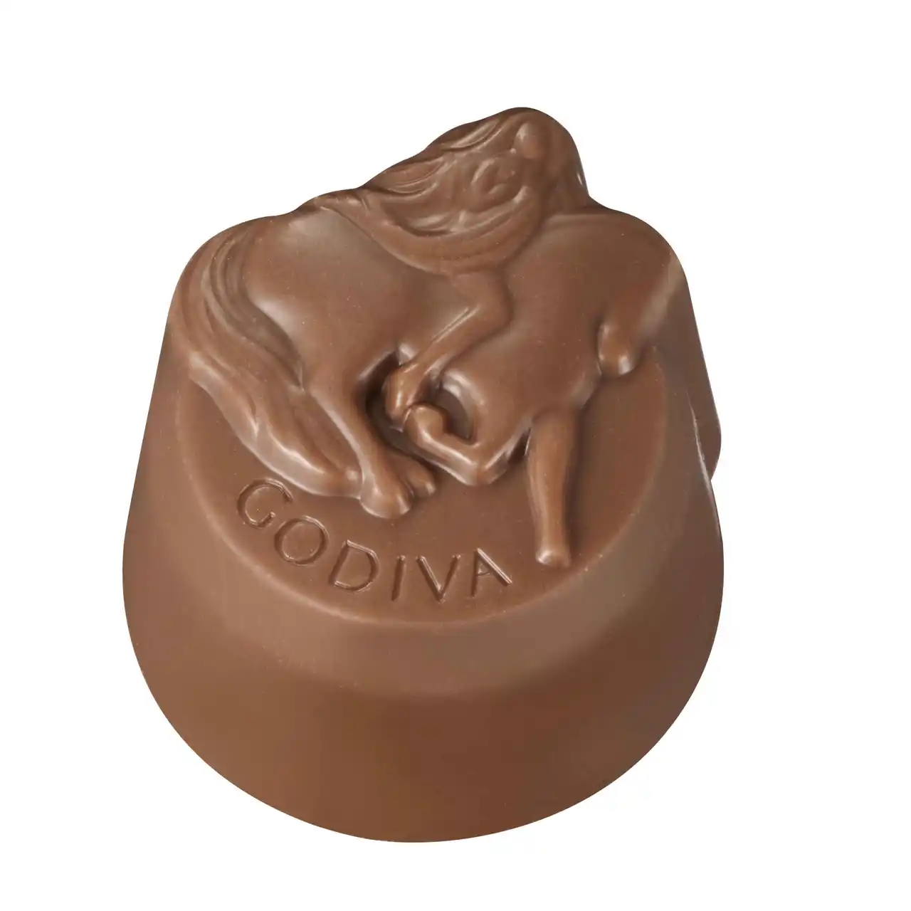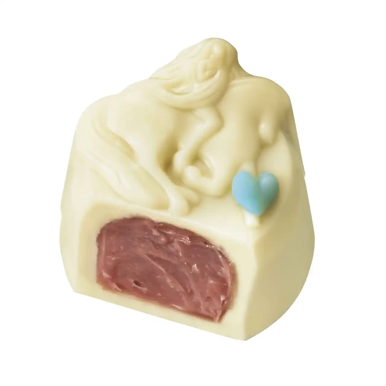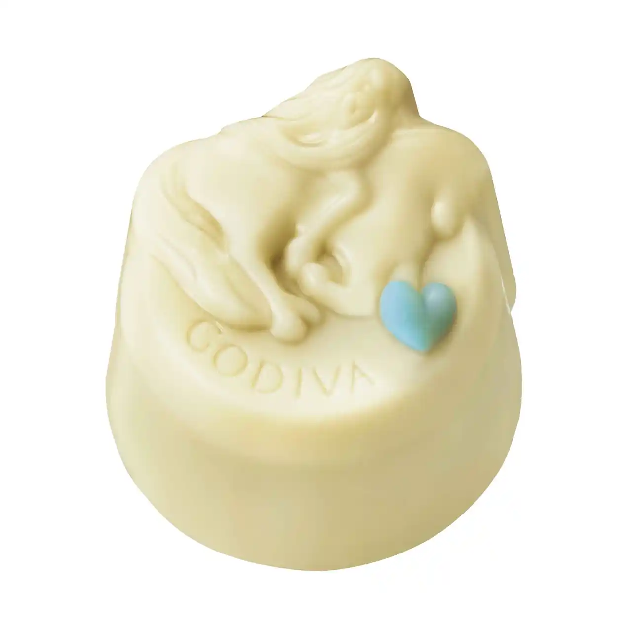 レディ・ゴディバをデザインしたホワイトチョコレートに淡いブルーのハートが付いていたら、当たり! |
