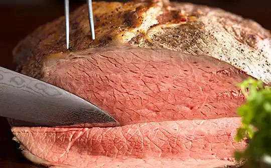 お客様の目の前で仕上げる看板メニュー「ローストビーフ」 |