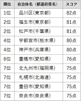 上位自治体は次の通りです。 (※同順位の掲載は五十音順) |