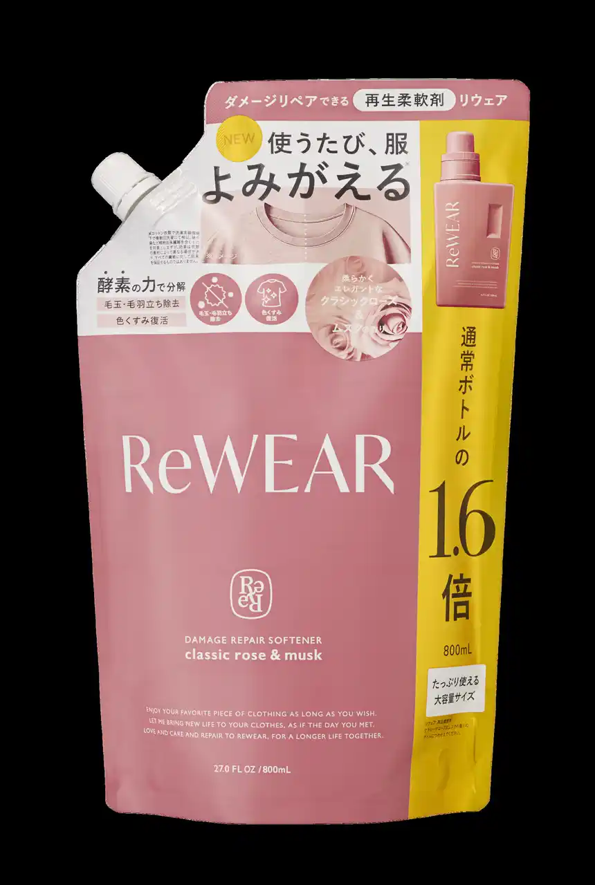 株式会社I-ne (本社:大阪市中央区) が展開する再生ファブリックケアブランド「ReWEAR (リウェア)」 の「再生柔軟剤 クラシックローズ&ムスク/フレッシュシトラス&グリーン」が、ブランド全体で累計販売数100万個を突破**しました。 また、日本経済新聞社「2025年日経MJヒット商品番付」に選出、2025年10月の TikTok Shop日用品部門ランキングでは1位を取得***しました。 |