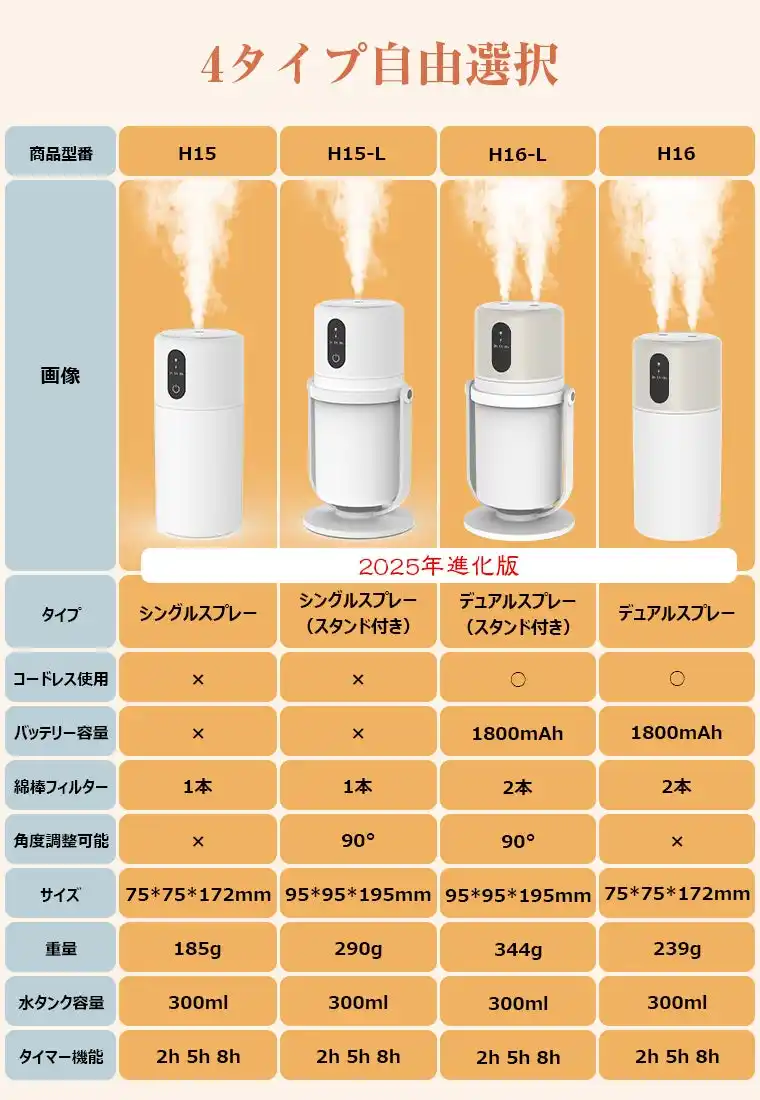 | L&Lライブリーライフ株式会社(所在地:東京都)は在宅ワークや睡眠環境、車内の乾燥対策に向けて、用途に合わせて選べる4モデルの新作パーソナル加湿器「H15/H15L/H16/H16L」を発売いたします。 | ||||||||||||||||||||