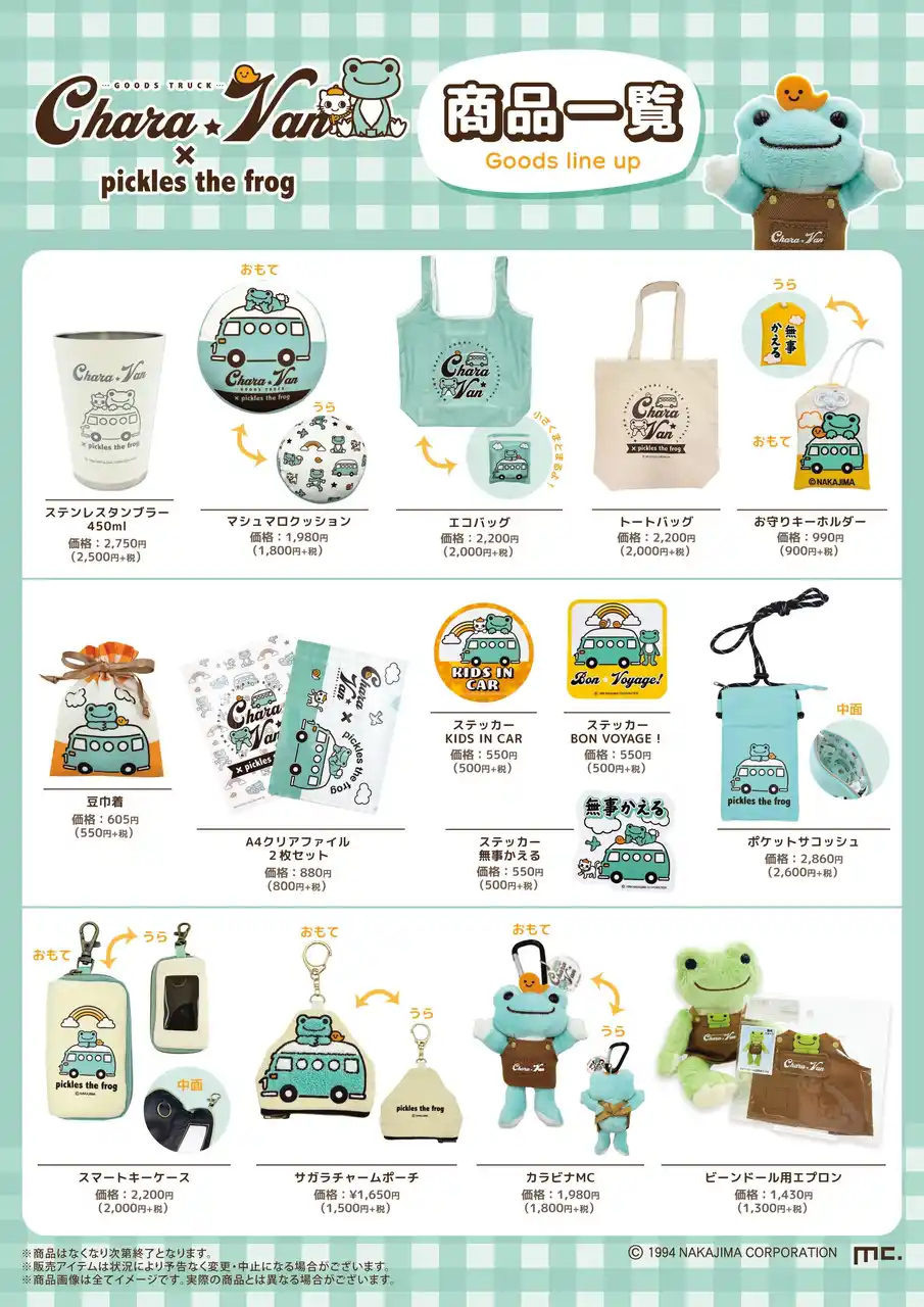 | 株式会社マリモクラフト(本社:東京都江東区)が運営する移動販売車グッズトラック「Chara★Van」(キャラヴァン)と、人気キャラクター「かえるのピクルス」の初のコラボアイテムを発売いたします。 | |||||||||