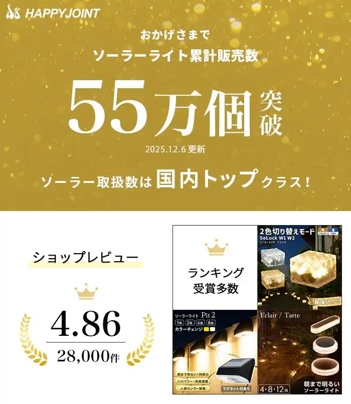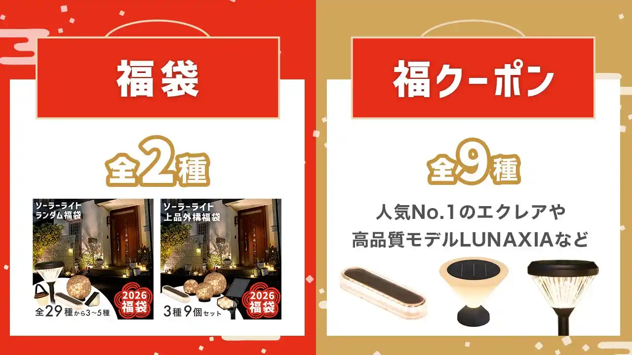 | 様々なソーラーライト・ガーデン雑貨を取り扱う株式会社HAPPY JOINT(ハッピージョイント)より、2025年12月12日(金)16時からソーラーライト福袋を販売開始。 |