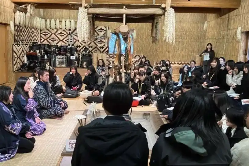 ※ウポポイ探究学習プログラム ウポポイで働く職員や登別・洞爺エリアの地元の方との交流を中心に、アイヌ民族の多様な歴史や文化に触れ、自然環境や火山、温泉、観光、地域産業などを知ることにより、「共生社会」を実現させるために必要なことを参加者一人一人が考えるプログラムです。 実施主体:公益財団法人アイヌ民族文化財団 |