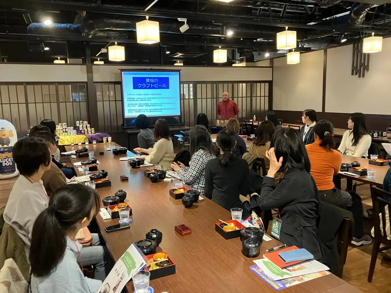 イベント当日は京都・中書島駅に集合した参加者を黄桜のシャトルバスでお迎えして、見学ツアーからスタート。酒どころの伏見にある「黄桜 伏水蔵」は、黄桜が手がける日本酒造りと地ビール造りを同時に見学できる蔵で、醸造の歴史と技術に触れながら、酒造りの奥深さを学んでいただきました。見学の後は蔵の中に併設されたレストラン会場において、黄桜のヘッドブルワー 宮部芳男氏より商品紹介プレゼンテーションと「LUCKY HORSE(ラッキーホース)」「LUCKY SHIBA(ラッキーシバ)」「LUCKY DOG(ラッキードッグ)」の試飲を含む、イベント限定の特別メニューの試食を体験。その他日本酒やビールも、購入された方にご堪能いただきました。 |