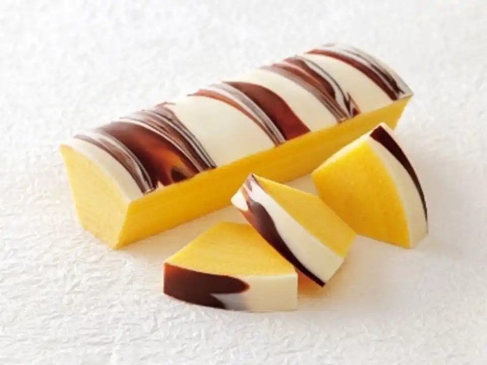 白樺の木肌をミルクチョコレートとホワイトチョコレートで表現した「しっとり系のバームクーヘン」。使用するバター、砂糖は全て北海道産を使用したこだわりの逸品。 |