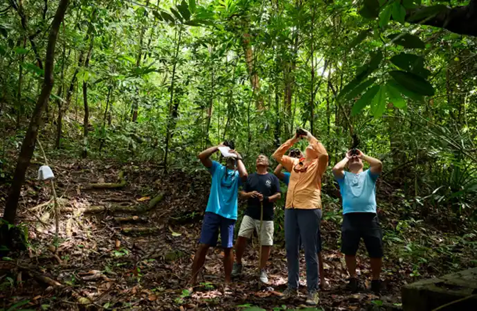 本リゾートホテルの裏山に広がる熱帯雨林の森を散策。パラオ固有の植物や野鳥のさえずりに耳を澄ませ、森の土壌がいかにして豊かな海を育むのか、その神秘的なメカニズムを五感で感じ取ります。 |