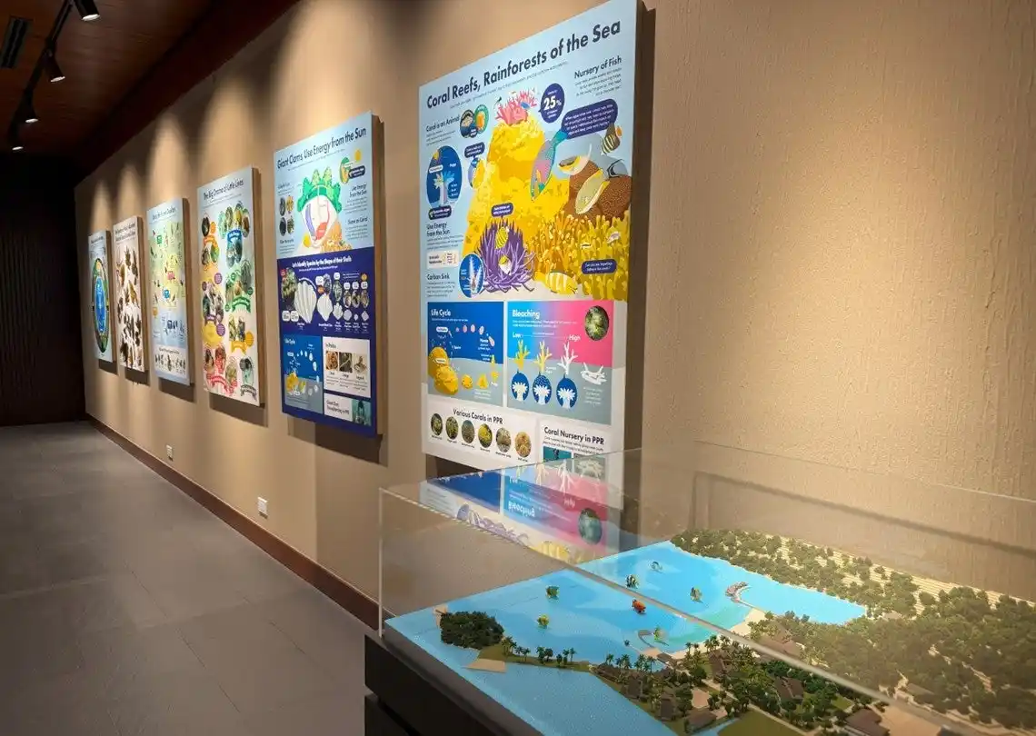 一見すると別々の世界に見えるこの二つの生態系は、森が雨水を蓄え、浄化し、栄養分を川から海へと運び、豊かなサンゴ礁を育むという、目に見えない壮大な生命のつながりで結ばれています。「Luuk」では、私たちは、このパラオの人々が大切にしてきたいる「Ridge to Reef(山から海までのつながり)」を身近に観察できる本リゾートの新施設を、生きとし生けるものの巣「ルーク」と名付けました。ここでは、様々な展示やをコンセプトの中心に据えました。インタラクティブな展示や専門知識を豊富に持つネイチャーガイドが、パラオの自然の魅力や意味、パラオに古くから伝わる数々の言い伝えなどをご紹介し、パラオの人々が育んできた独自の自然感の世界が、お客様をこの生命の物語へとゲストの皆様を誘います。 |