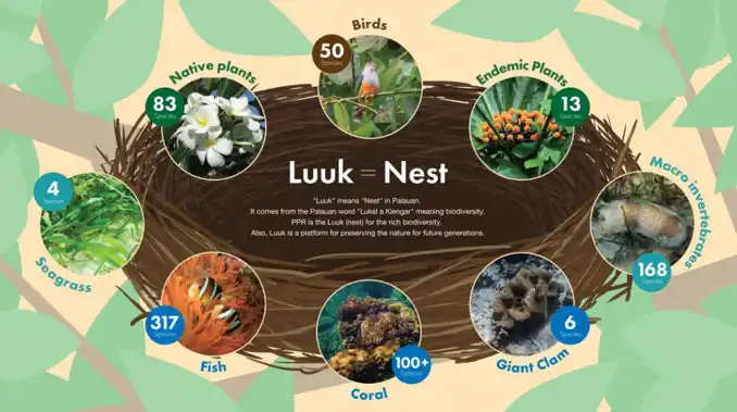 「ルーク」はパラオ語で「Nest(巣)」を意味します。本リゾートの森や海が多様な生きもの生命の「巣」であること。そしてこの「ルーク ネイチャーセンター」施設が、訪れる人々の知的好奇心を育み、自然との新たな関係性が生まれる「拠点(巣)」となることへの願いが込められています。 |