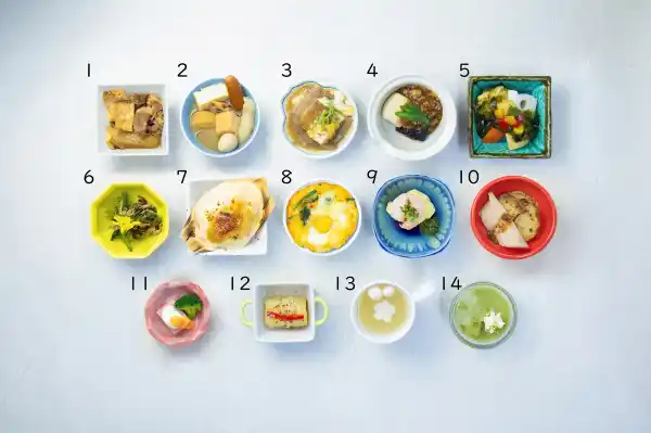 9升に仕切られたトレイにお好きな小鉢を乗せるスタイルは、見た目が美しく「映える」だけでなく、味が混ざらず、少しずつ多品目を味わえるのが特徴。旬の食材と確かな技が織りなす「冷菜・温菜・スープ」をお楽しみください。