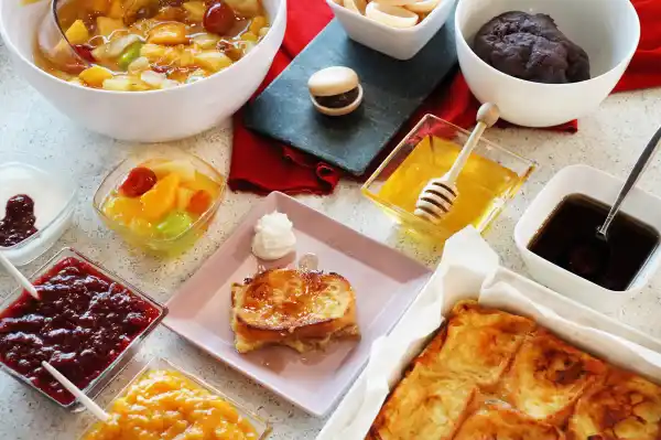 『エッグ de グラタン』や『ハムステーキエッグオランデーズソース』に加え、朝食限定で『目玉焼き』もご用意。また、引き続き「シェフズセレクト」として、旬の食材を料理人の技で仕上げた特別メニューも提供いたします。