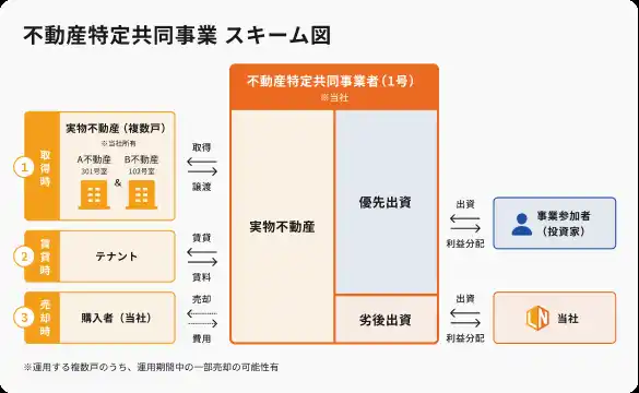 優先劣後割合:投資家(優先出資部分)89.99%、当社(劣後出資部分)10.01% |