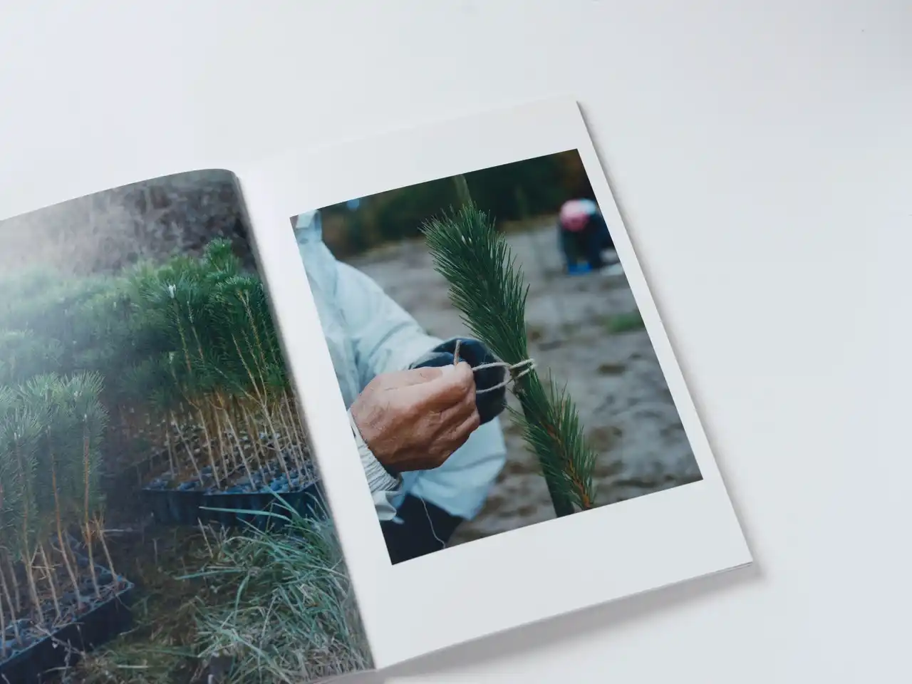 本作では、遊佐町の象徴である鳥海山、庄内平野の田園、そしてこの地で暮らす人々を中心に撮影を行いました。日本海と鳥海山に挟まれ風が強い遊佐町では、江戸時代より自然の猛威から家や畑を守るためにクロマツの植林が進められ、今も農家を中心にその保全活動が受け継がれています。写真集では、その歩みと現場の様子を丁寧に追いました。また、鳥海山ではガイドによる保全活動に密着し、登山者を安全に導く姿を記録。