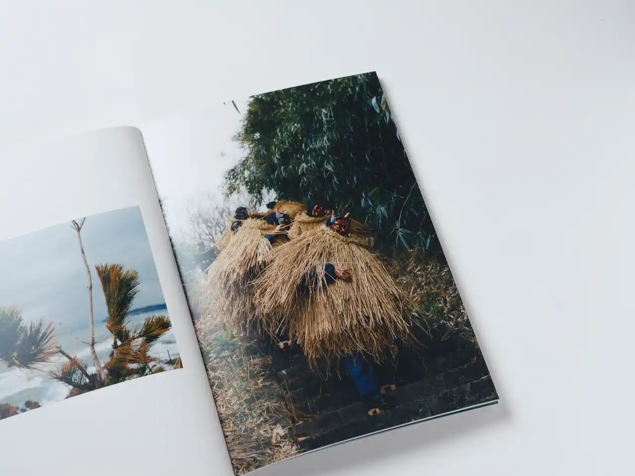 伝統技法「遊佐刺し子」では、かつて橇木山作業の安全祈願のために文様が施された法被の歴史を紹介し、山と人をつないできた文化を描いています。さらに「アマハゲ」「さんど小屋」などこの地に根付いた祈りの行事にも触れ、先人から続く営みと現代の風景を重ね合わせながら、遊佐町の“現在”を写し取りました。現代は“風の時代”とも呼ばれる価値観の転換期にあります。目に見えない風や祈り、人々の営みの連続性を感じながら、この土地が形づくられてきた背景を読み解き、見る人に新たな問いを投げかける写真集です。 |