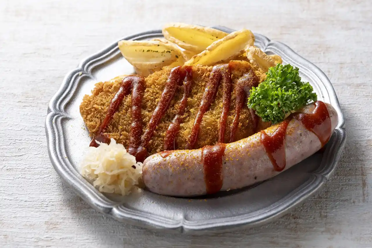 薄く伸ばした豚肉に衣をつけて揚げた、ドイツの伝統料理「シュニッツェル」を相性抜群のカレー風味にアレンジ。本格カリーヴルストと一緒にお楽しみいただけます。 |