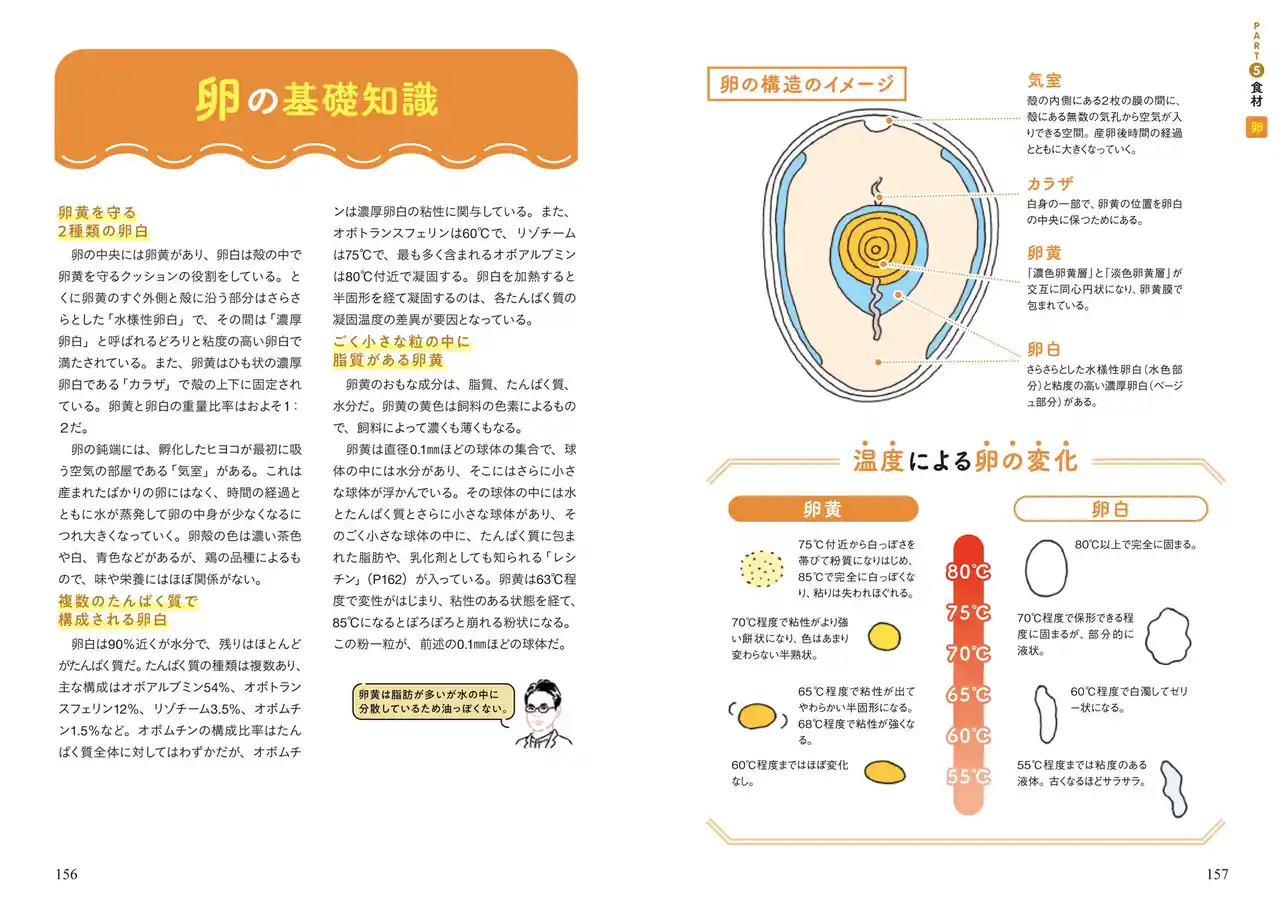 | 「肉の固さはどう決まる?」「新しい卵の見分け方は?」「野菜の色を美しく保つには」など、調理に役立つ科学的なエビデンスも豊富に紹介。知識を身につければ、食事を味わうのも、料理をするのも、ぐっと楽しみが深まります。 | |||||||||