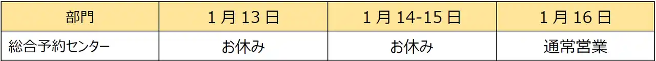 ※施設の維持・管理に携わるスタッフについては当該期間に出社しますが、別日にて休暇を取得する予定です。 |