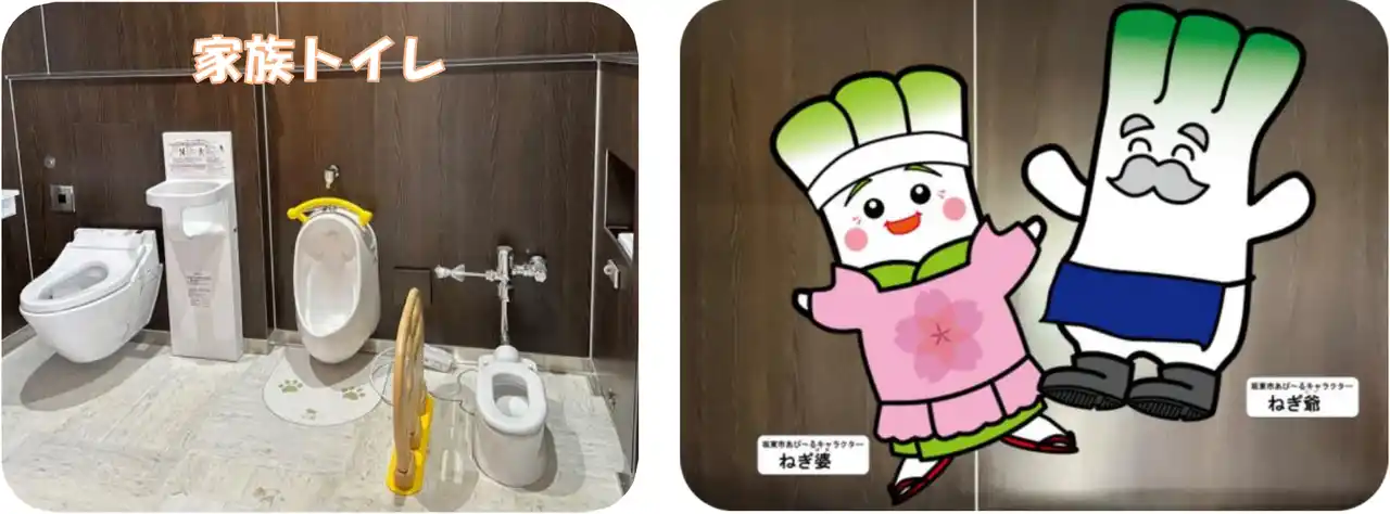 お子様連れのお客さまにも安心してご利用いただけるよう、ご家族でご利用いただける「家族トイレ」を設置します。家族トイレはおむつ替えにもご利用いただけます。 |