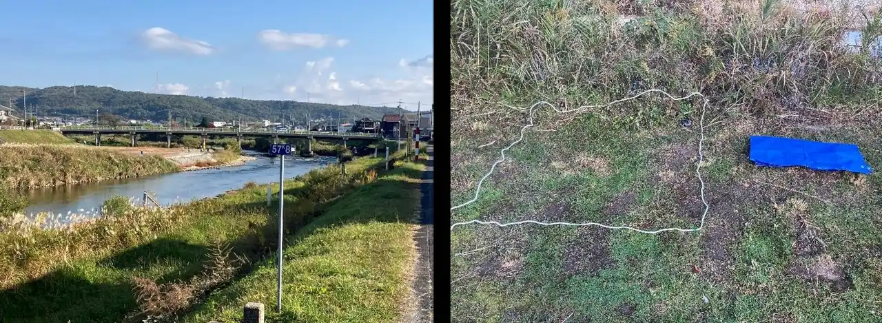 設定した調査区画内における収集物は、ゴムサンダル1個のみであり、ごみの数としては非常に少ない結果となりました。しかし、調査場所以外の清掃活動箇所では、特に橋の下や背の高い草むらの中などの人目に付きにくい場所に、ペットボトルや空き缶などのごみが散見されました。一方で、たばこの吸い殻はほとんど見当たらず、背の高い草むらなどの一部の隠れた場所を除けば、全体的には他の調査地点と比較してごみの総量は少なく、比較的良好な環境が保たれているといえます。 |