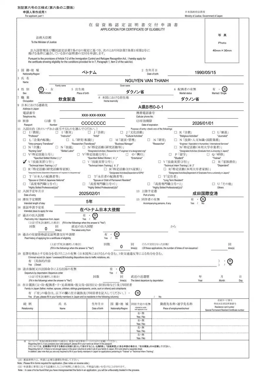 対応資格:特定活動、特定技能1号・2号 |